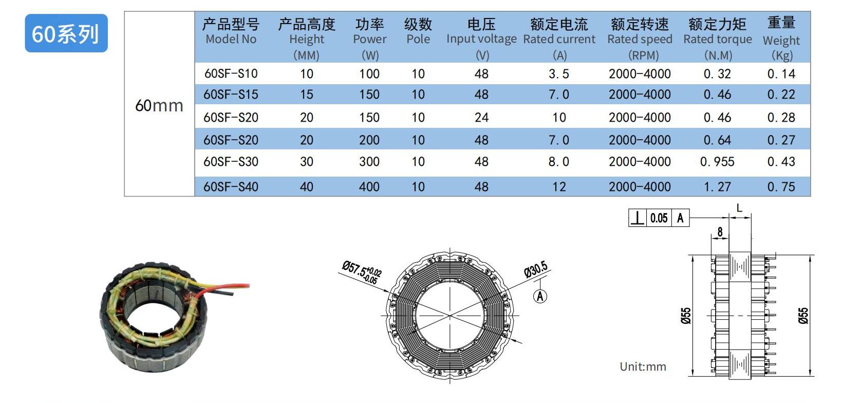 | 60SF-S40 | 1.27 | 3000 | 0.15 |