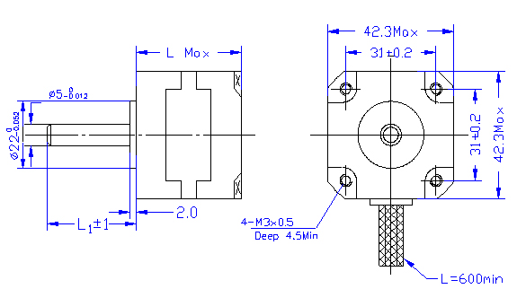 混合式步進電機 詳細說明: 步距角誤差…………………5% 最高溫升……………………80℃ Max 環境溫度范圍………………-20℃~+50℃ 絕緣電阻……………………100MΩMin.500 VDC 介電強度……………………500V AC 1 minute