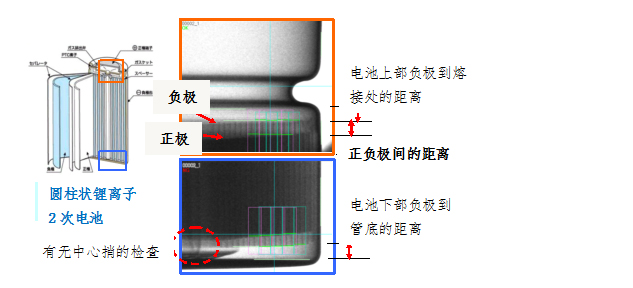 <自動測量・檢查項目> ①正負極間距離(上下) ②電池上部負極-Beading間距離 ③電池下部負極-管底間距離 ④中心銷子的有無 |