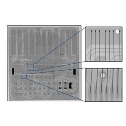 事例 直交CT選項功能 用直交CT(錐形束)進行的電容的攝影例。(選項) 從電容的斷面圖像能進行產品內部的3維解析、異物混入、缺陷觀察・解析。